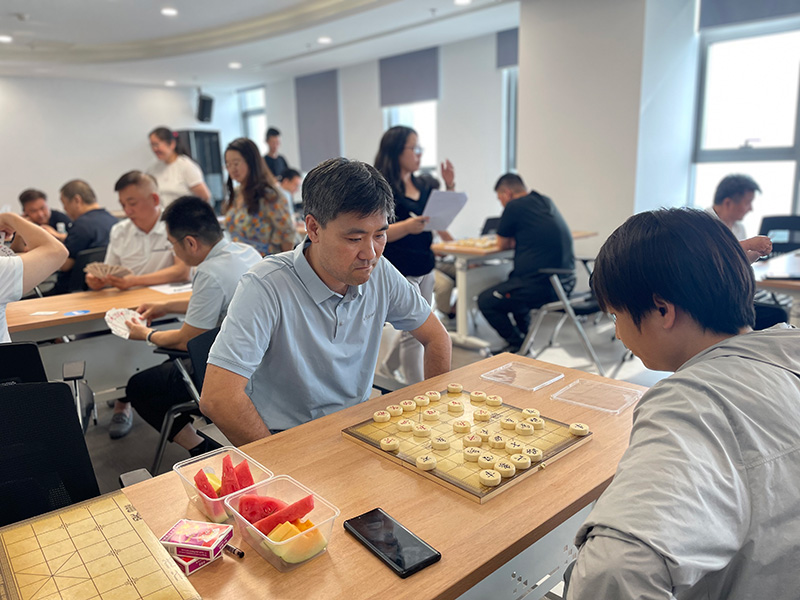 “楚河對漢界、摜蛋斗地主”。棋牌比賽中,大家“切磋棋藝,以牌會友”,個(gè)個(gè)沉著冷靜,思路敏捷。在楚河漢界之間縱橫車馬、調(diào)兵遣將;在方寸撲克之中,聚精會神,沉著應(yīng)戰(zhàn),憑借默契的配合,讓“戰(zhàn)局”高潮迭起。