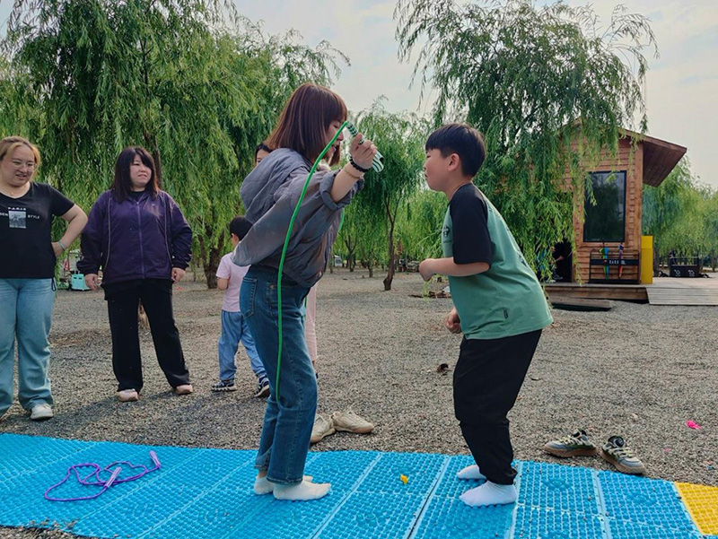 最后的指壓板大戰(zhàn)搖身變?yōu)橐粓觥巴觋J關(guān)大挑戰(zhàn)”。大家赤足踏上指壓板,挑戰(zhàn)跳繩、跳格子等經(jīng)典童年游戲任務(wù)。腳底雖傳來陣陣酸爽刺激,臉上卻始終綻放著燦爛笑容,咬牙堅持。團隊成員們在一旁奮力吶喊助威,互相鼓舞打氣,齊心協(xié)力共闖難關(guān),在歡笑與互助中凝聚起強大的團隊力量,將活動氛圍推向頂點。