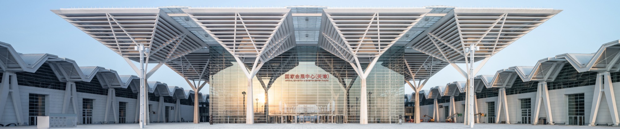 國家會展中心(天津)體量龐大、造型規(guī)整,集展覽、會議、商業(yè)、辦公、酒店功能于一體??偨ㄖ娣e約134萬平米,其中室內(nèi)展覽面積約40萬平米, 室外展覽面積約15萬平米,為中國展覽面積最大、使用體驗(yàn)最佳的會展綜合體。項(xiàng)目分兩期建設(shè),一期工程總建筑面積約80萬平米,室內(nèi)展覽面積約20萬平米,總停車位數(shù)5000余個(gè)。